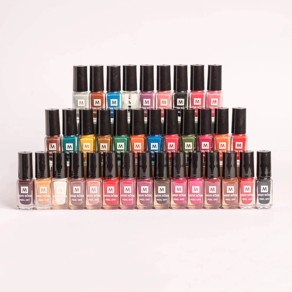 Unleash your creativity with the Miss Rose Color Me Peel Off Nail Paint set, featuring 36 vibrant shades to match every mood and occasion. This peel-off nail polish is the perfect solution for those who love to change their nail color frequently, without the hassle of using nail polish remover. Simply apply, enjoy your vibrant look, and peel off when you're ready for a new shade.